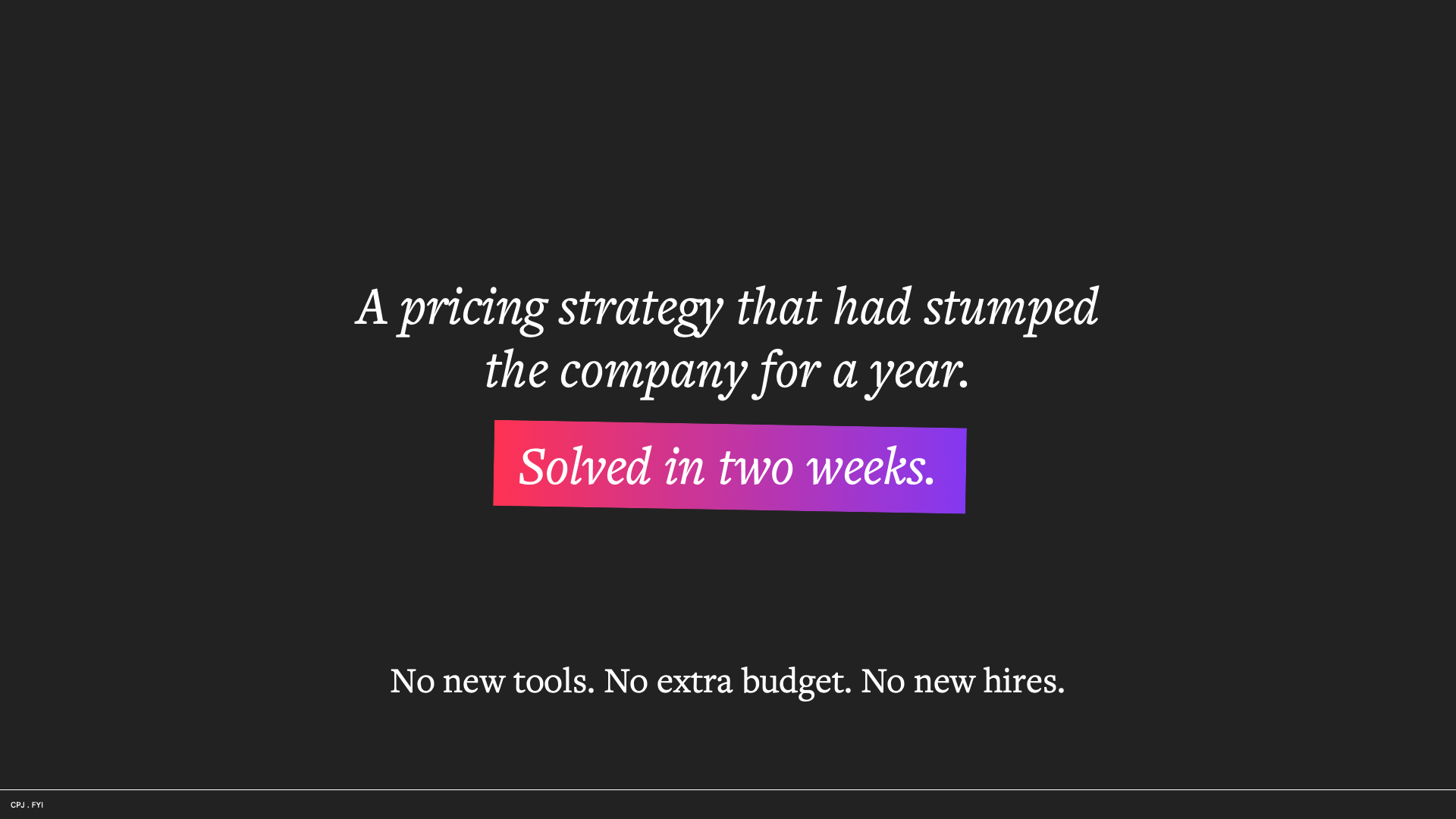 One of them looked up and said, "We did it." They had just cracked a pricing strategy that had stumped the entire company for a year.