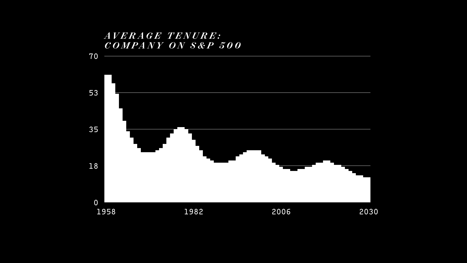 We see it when we look at the tenure of the companies listed on the S&P 500,1 down now to 18 years.