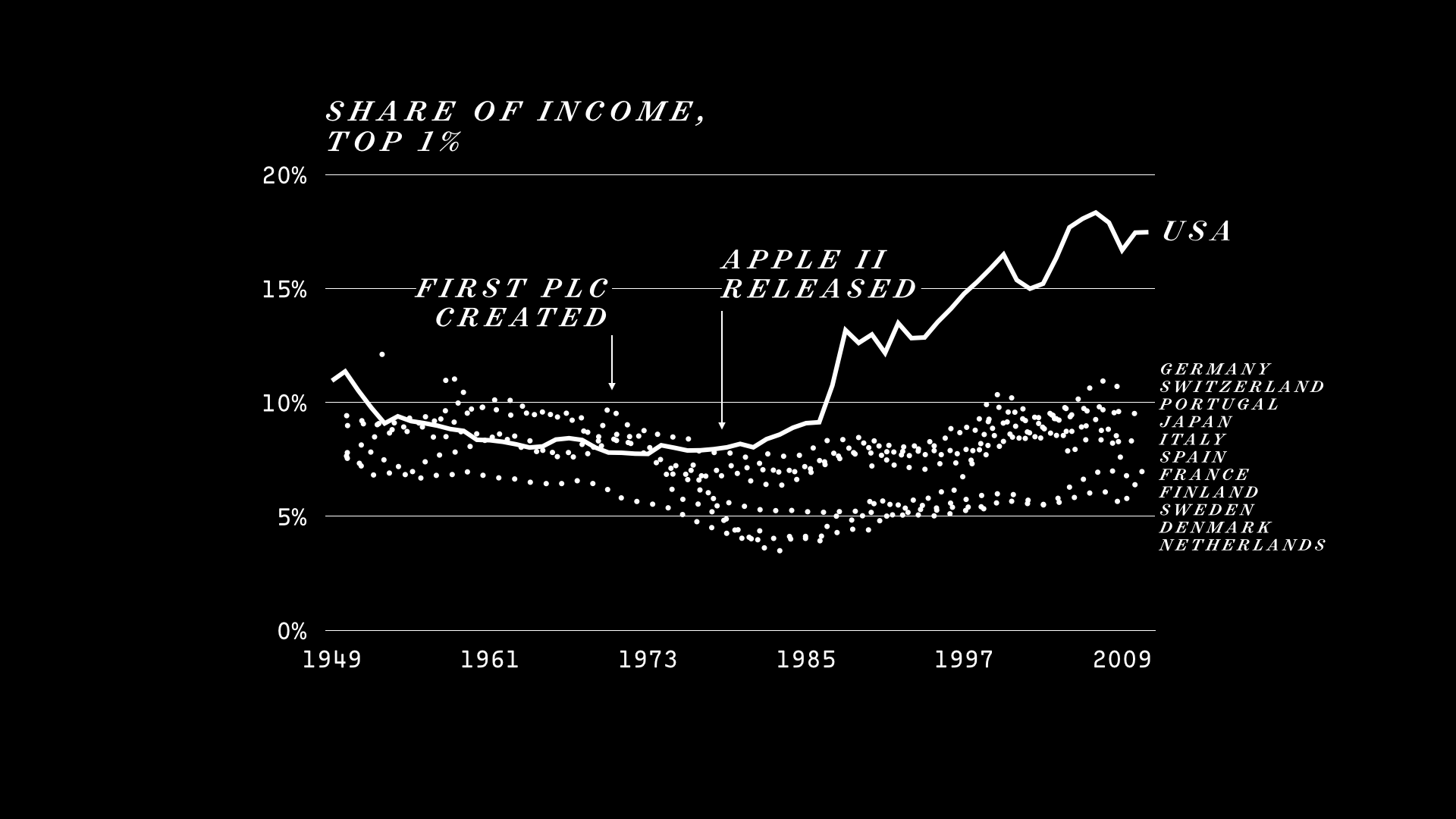 Because size does have a huge benefit, and software has made the financial advantages of scale even more powerful.2 This chart should make clear that we can indeed choose the kind of world we live in – and though our organizational choices we’ve decided on a world few of us actually want to inhabit.