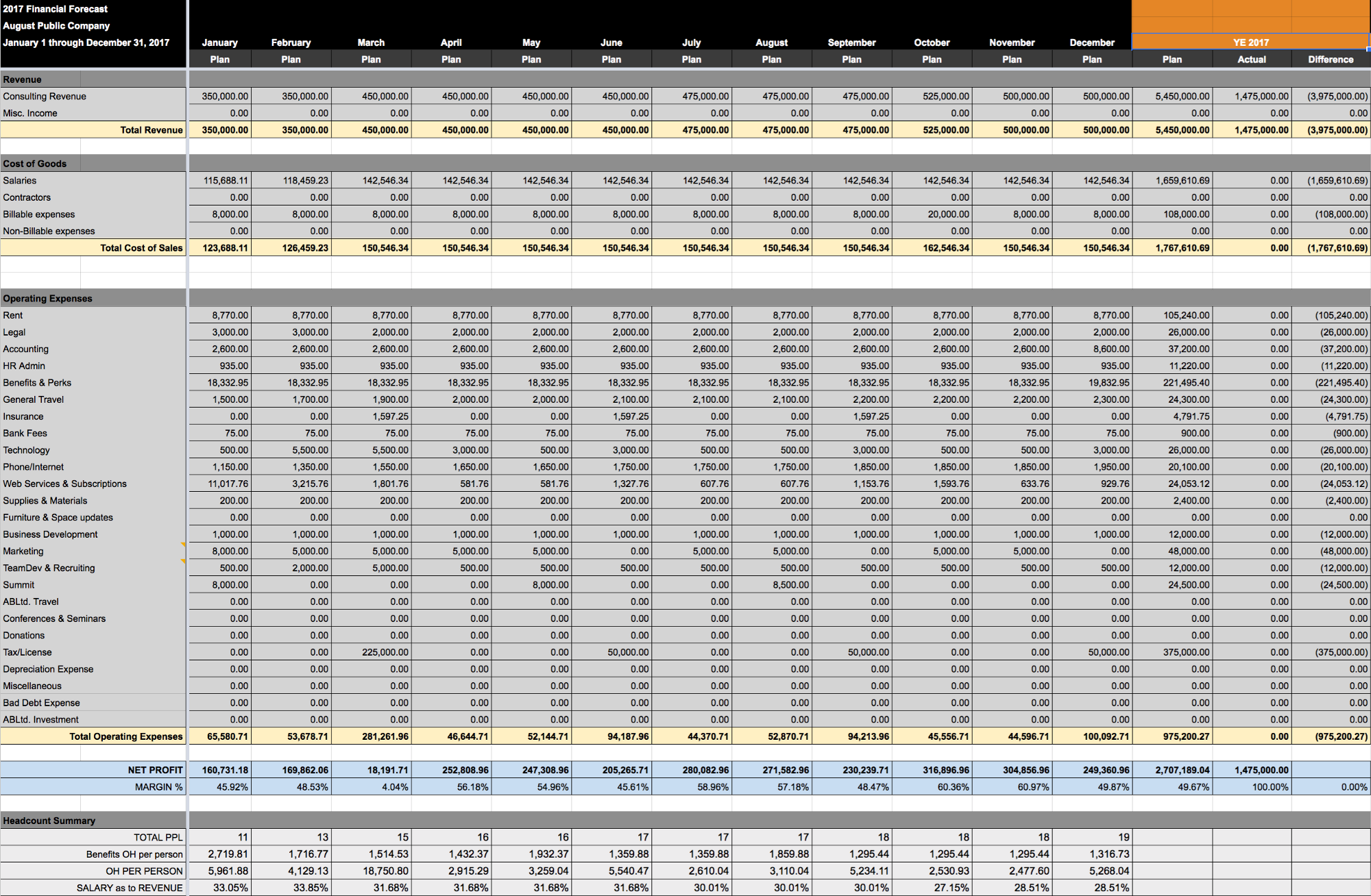 For all of 2016, we were targeting a 35% allocation of our revenue to salaries. We’ve recently decided to up that allocation to 45%, in favor of bringing more people onto the team and improving the quality of our product while decreasing our net margin (shooting for fewer projects with more people = less profit):