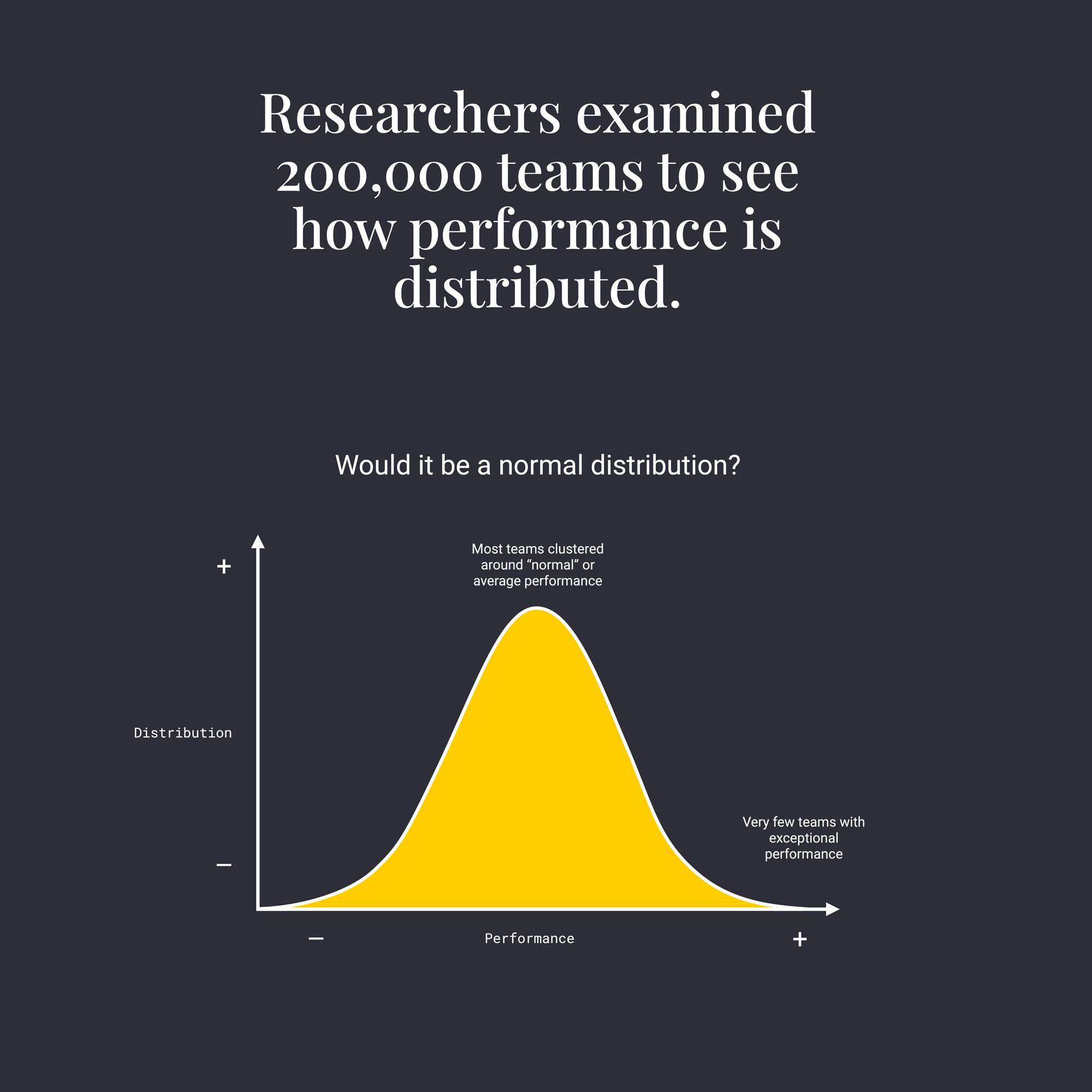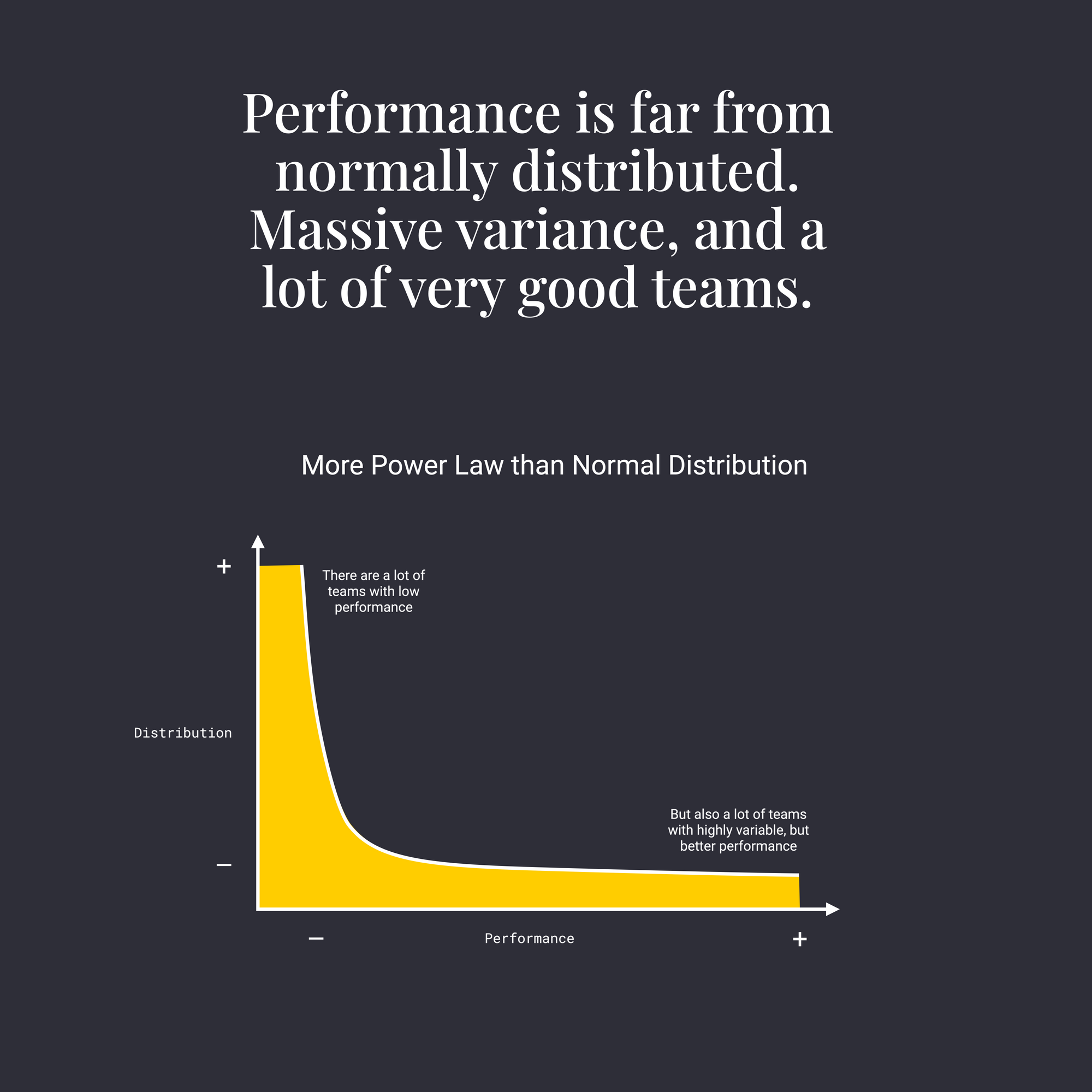 🚀 The distribution in team performance isn’t normal – it looks more like a Power Law. That is, a lot of teams are bad, and a lot more teams than you would expect are very, very good. Generally speaking, this tracks with my experience. What I've observed is that most people have never worked on a high-performing team at work, and for most executives, if they've worked on one, it's a distant memory (according to this, only 21% of leadership teams are outstanding, 37% are mediocre, and 42% are poor).
