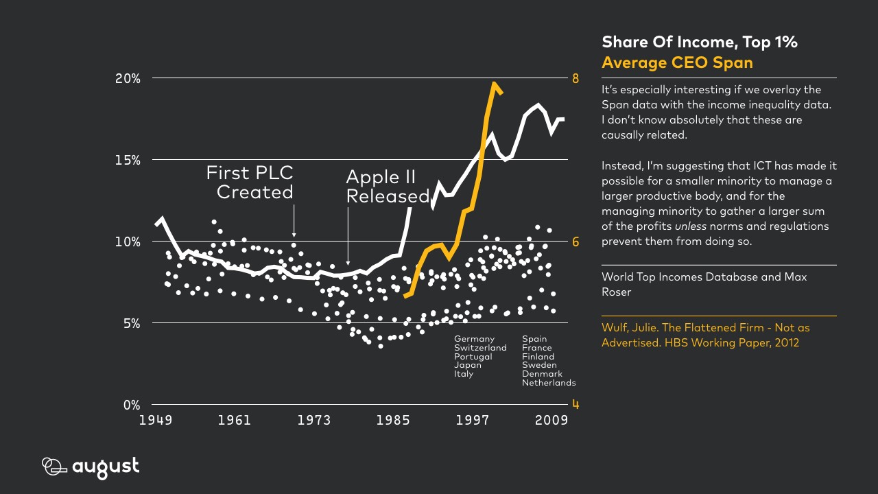 Performance management exists to find great decision-makers and push them to the top of the organization. Projects don’t run without a senior bod calling the shots. Software is procured at the top and pushed down, because Integration and Business Cases and Efficiency. We aim for Big Bets because they showcase our personal decision-making ability, and because decisions are hard to make (see: rigor! pre-reads! 50-person update calls! dotted lines!), we make them infrequently in order to reduce the pain. And yet, it’s sorta working fine (see: profits! executive comp!).